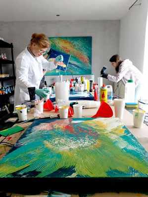 Unsere privaten Action Painting Events sind die perfekte Gelegenheit, um deine Gruppe kreativ zu vereinen.